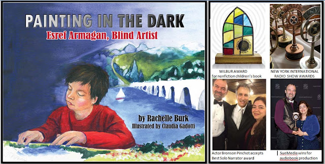 PAINTING IN THE DARK: ESREF ARMAGAN, BLIND ARTIST tells the true story of a contemporary Turkish artist who was born completely without sight. Rachelle Burk captures his extraordinary life in this picture book as he learns to “see” not with his eyes, but with his hands. The images of his paintings depicted in the book are actual photos of his original paintings embedded into Claudia Gadotti's illustrations.